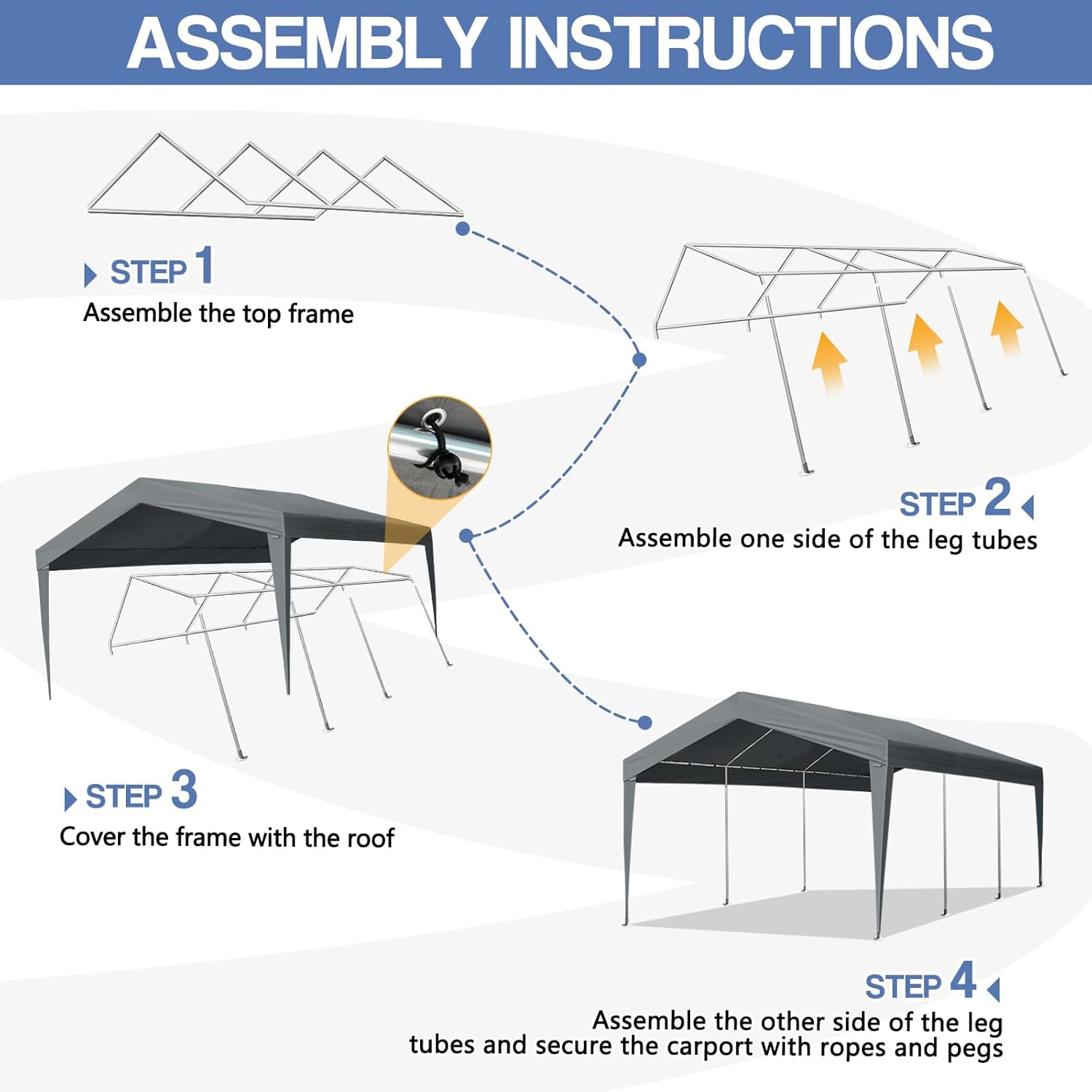 - Spacious Heavy-Duty Carport: The 12x20 car port provides ample space for your vehicles, boats, cargo, etc. Removable sidewalls and doors can meet your various needs. The carport canopy shelter is perfect for parties, commercial exhibitions, outdoor events, weddings, storage shelters, and so on