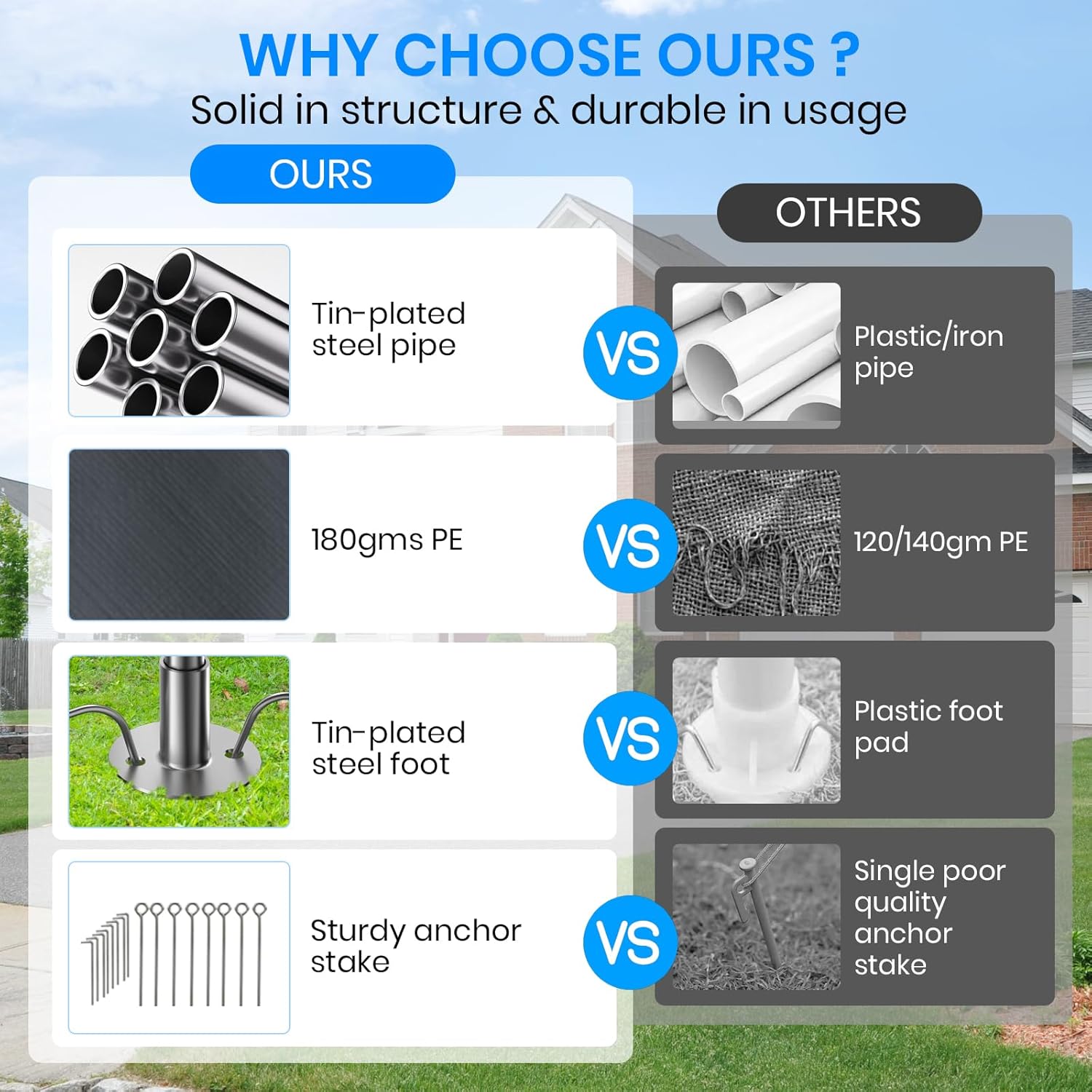 - Multi-Purpose Protection:Not just for vehicles, this 12x20 FT carport is ideal for storing boats, RVs, motorcycles, and even as a shelter for outdoor events like parties, picnics, or gatherings. Its versatile design ensures it can adapt to various needs, providing reliable shelter wherever you need it.