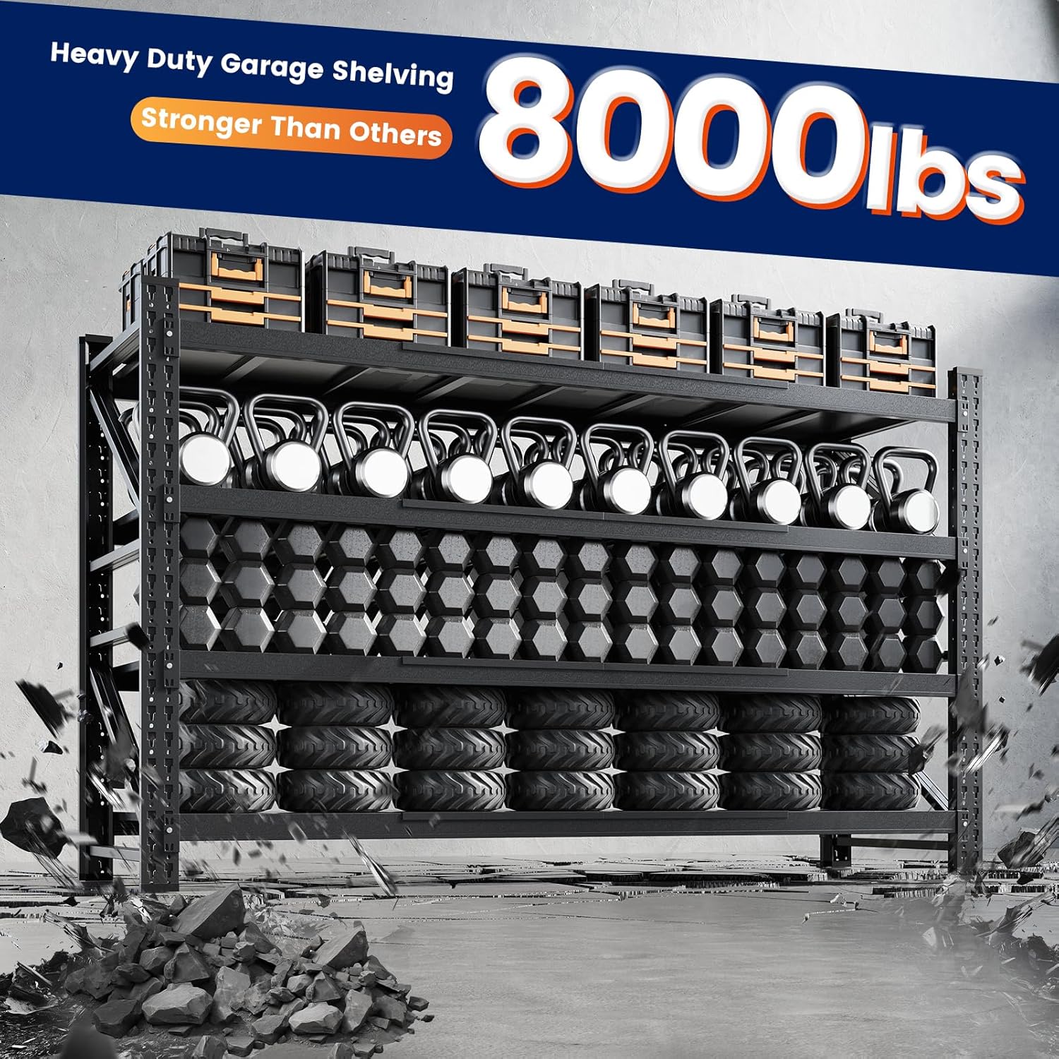 - 【Adjustable 4-Tier Shelving】Our garage storage shelves are as flexible as your plans.This heavy duty shelving height of each layer could adjustable by moving the crossbar up or down,to meet the different heights of varied objects needed and customize your own space!