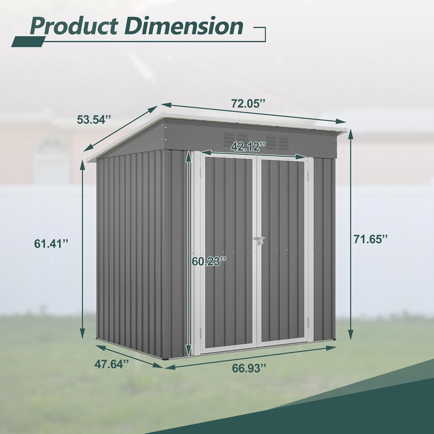 - 【Spacious Storage Space】This 6 X 4-Foot Metal Shed Provides Ample Storage Space And Can Easily Accommodate Snow Blowers, Shovels, Outdoor Furniture, Bicycles, Gardening Tools And Other Items, Making It An Ideal Choice For Your Yard Tidying Up.