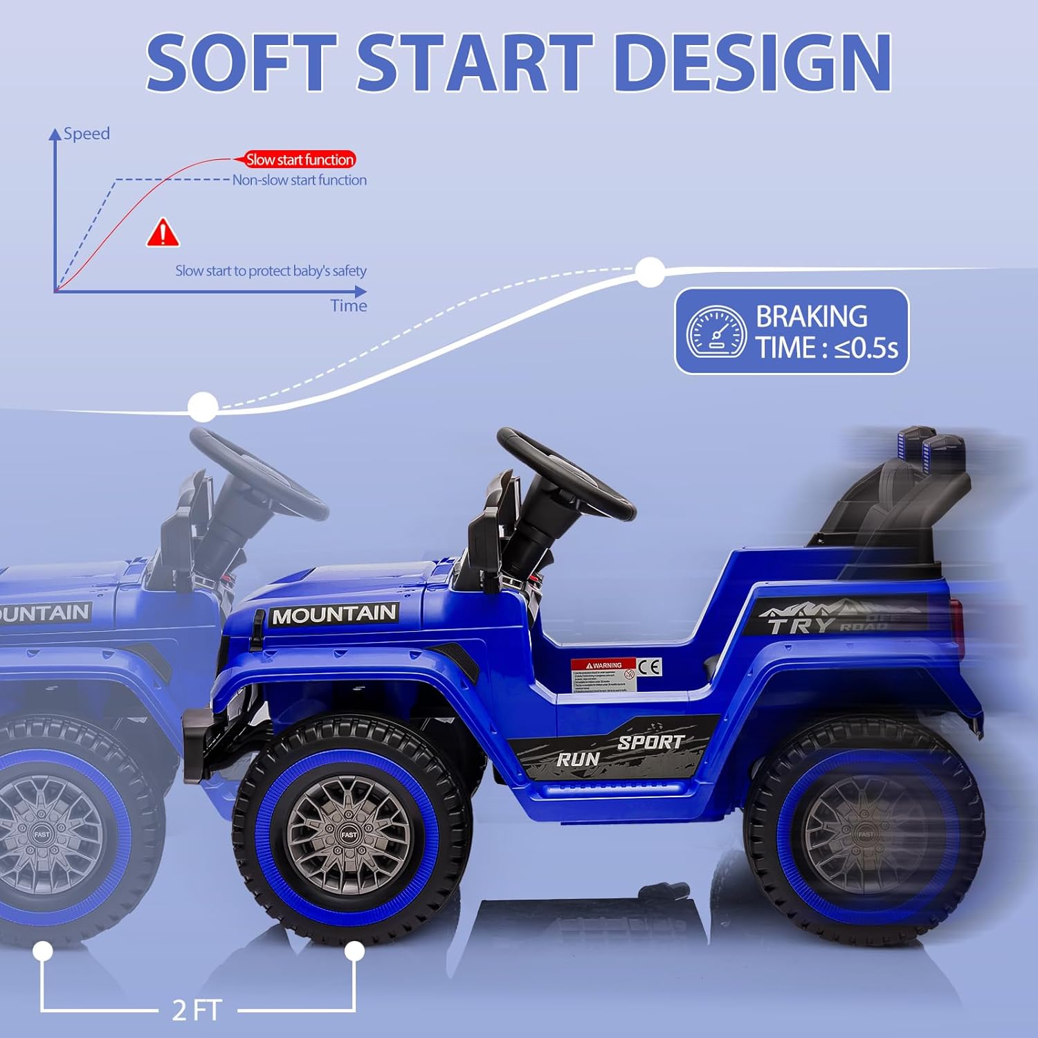 - Excellent Driving Performance: Equipped with two powerful 35W drive motors, this kids electric car can reach a top speed of 3.1 mph, providing a realistic off-road driving experience. It features four 11-inch large tires that offer superior grip and stability, ensuring a comfortable ride even on rough terrain like gravel roads.