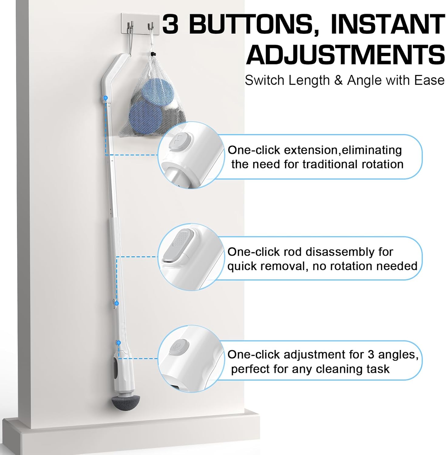 Shower Scrubber, Electric Spin Scrubber with 2025 New Upgraded Motor, User-Friendly Design, 3 Adjustable Angles & Speeds, 8 Brush Heads for Cleaning Bathroom, Cleaning Supplies for Tire, Windshield