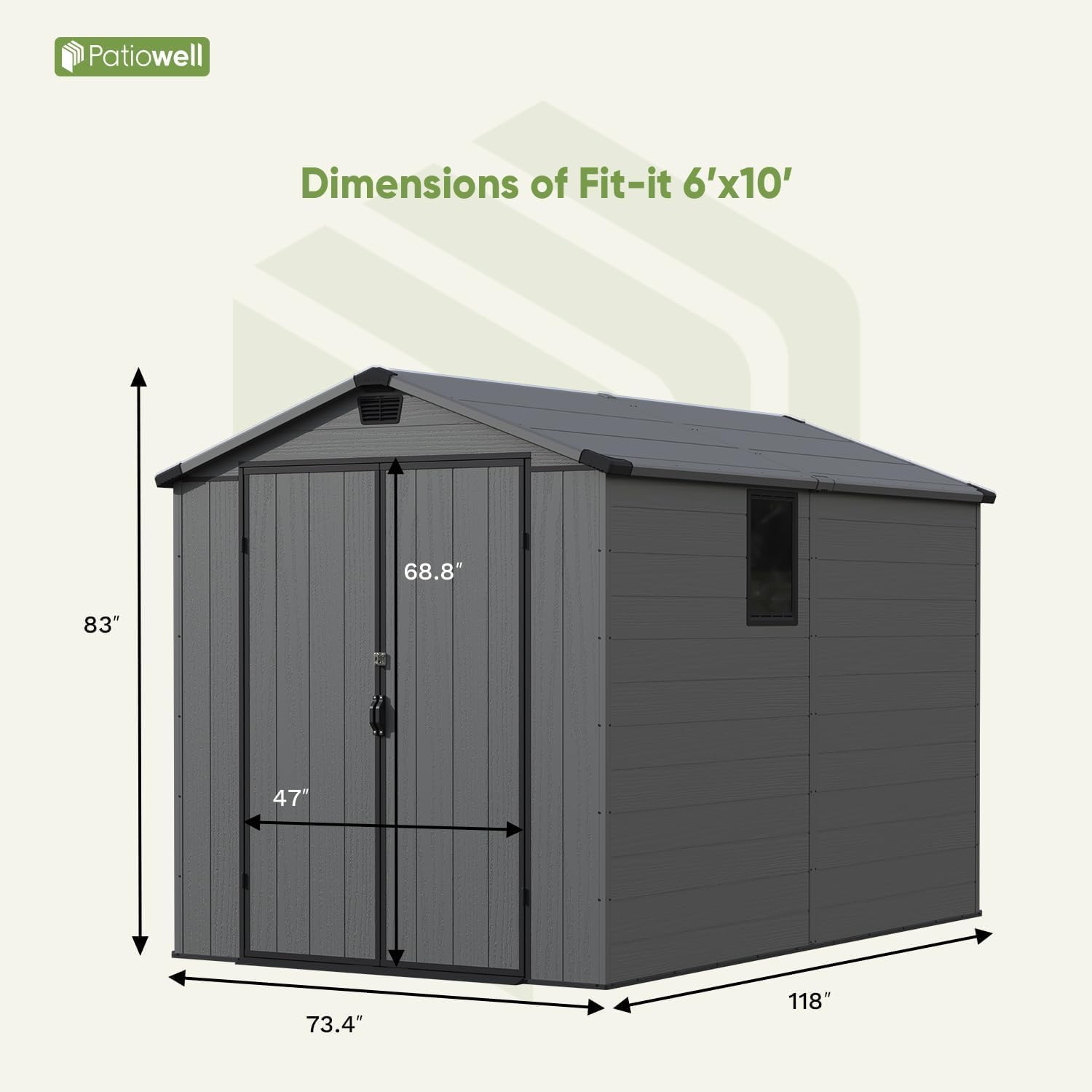 Patiowell 6x10 FT Outdoor Plastic Storage Shed with Floor - Lockable Resin Tool Shed, 2 Windows, Easy Assembly for Garden/Backyard (Dark Grey)