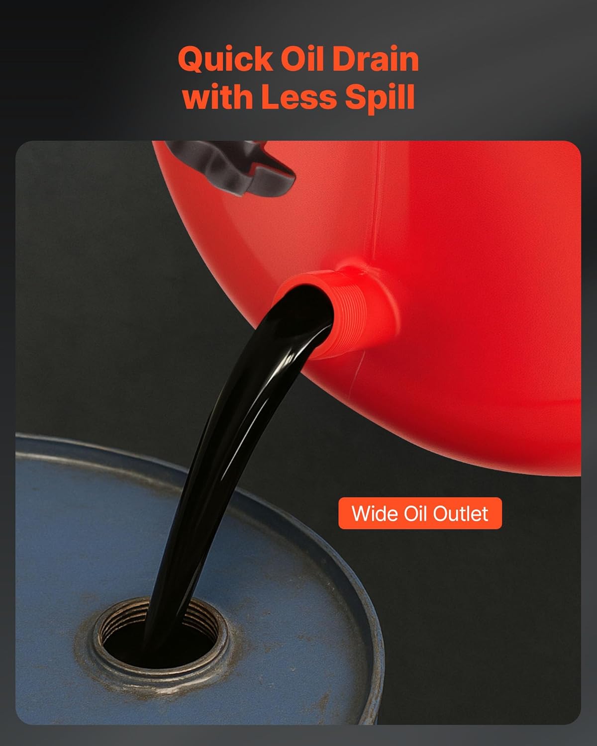 - Leak-proof Design: Our oil drain container includes a 16.5-inch wide spill-proof funnel, improving oil recovery. Comes with extra sealing tape and clamps for additional leak protection, avoiding overflow and spills