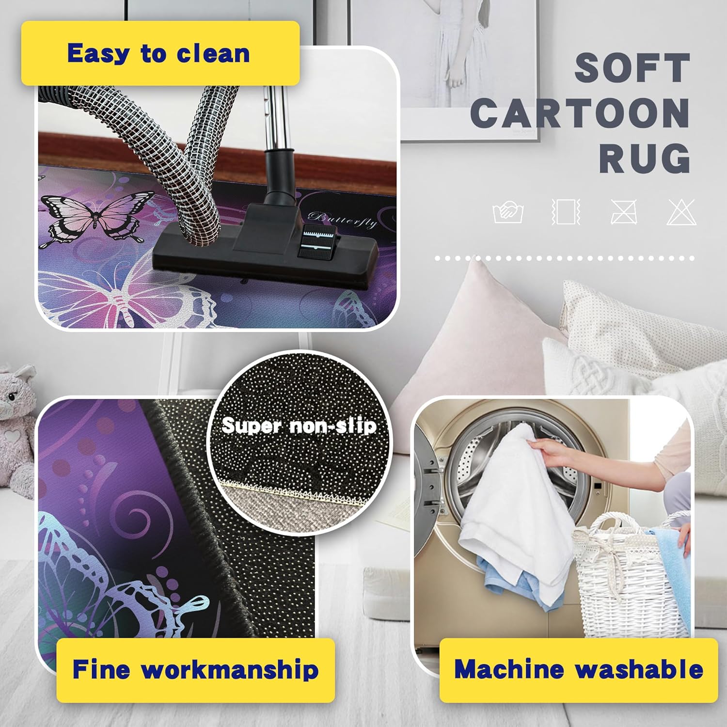 - Practical Non - Slip & Easy Clean:Equipped with a non - slip backing for stable placement, enhancing safety. Machine - washable design allows for effortless cleaning of spills and stains, keeping the rug looking fresh with minimal effort.