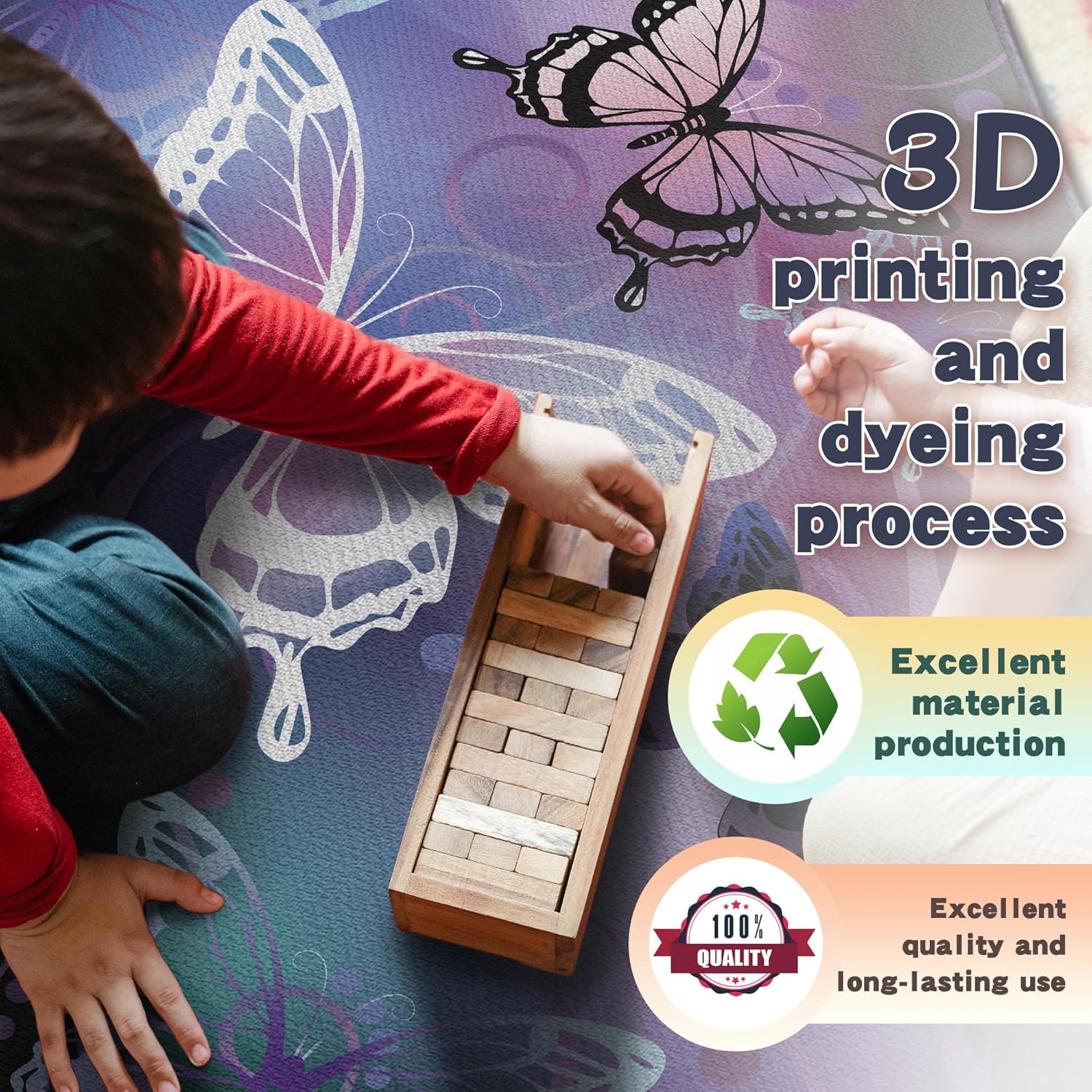 Beautiful Butterfly Fantasy Rug for Playroom Girls Bedroom Colorful Rainbow Butterfly Decor Area Carpet 2x3 Purple Mat 3D Printed Non-Slip Washable