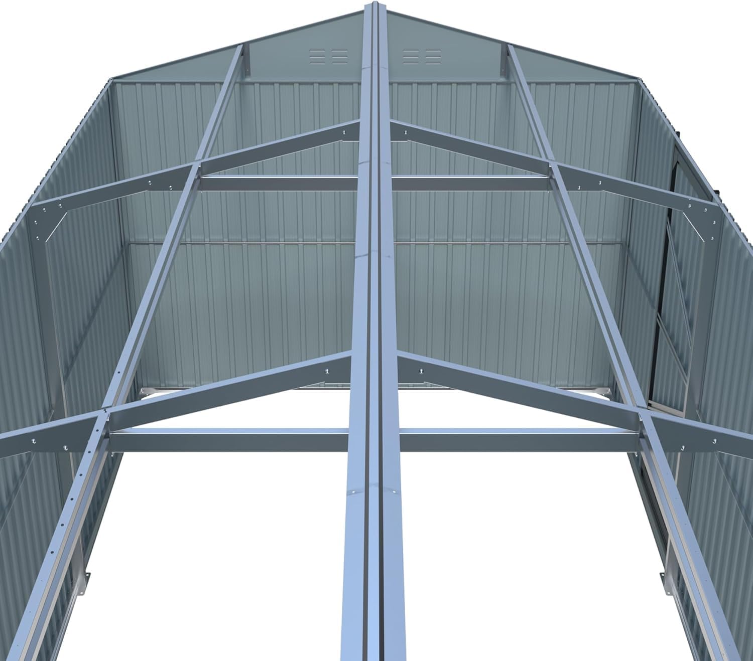 - Spacious Metal Shed for All Your Outdoor Storage: This storage shed provides an impressive 240sq. ft of walk-in storage space, perfect for cars, trucks, bikes and large equipment. The metal shed features durable galvanized steel construction with a powder-coated frame, duty metal shed design with 20lbs/sqft Snow Load Capacity and 50M/ph Wind Resistance. With double hinged doors and lockable security, this storage shed large keeps your belongings safe and organized.