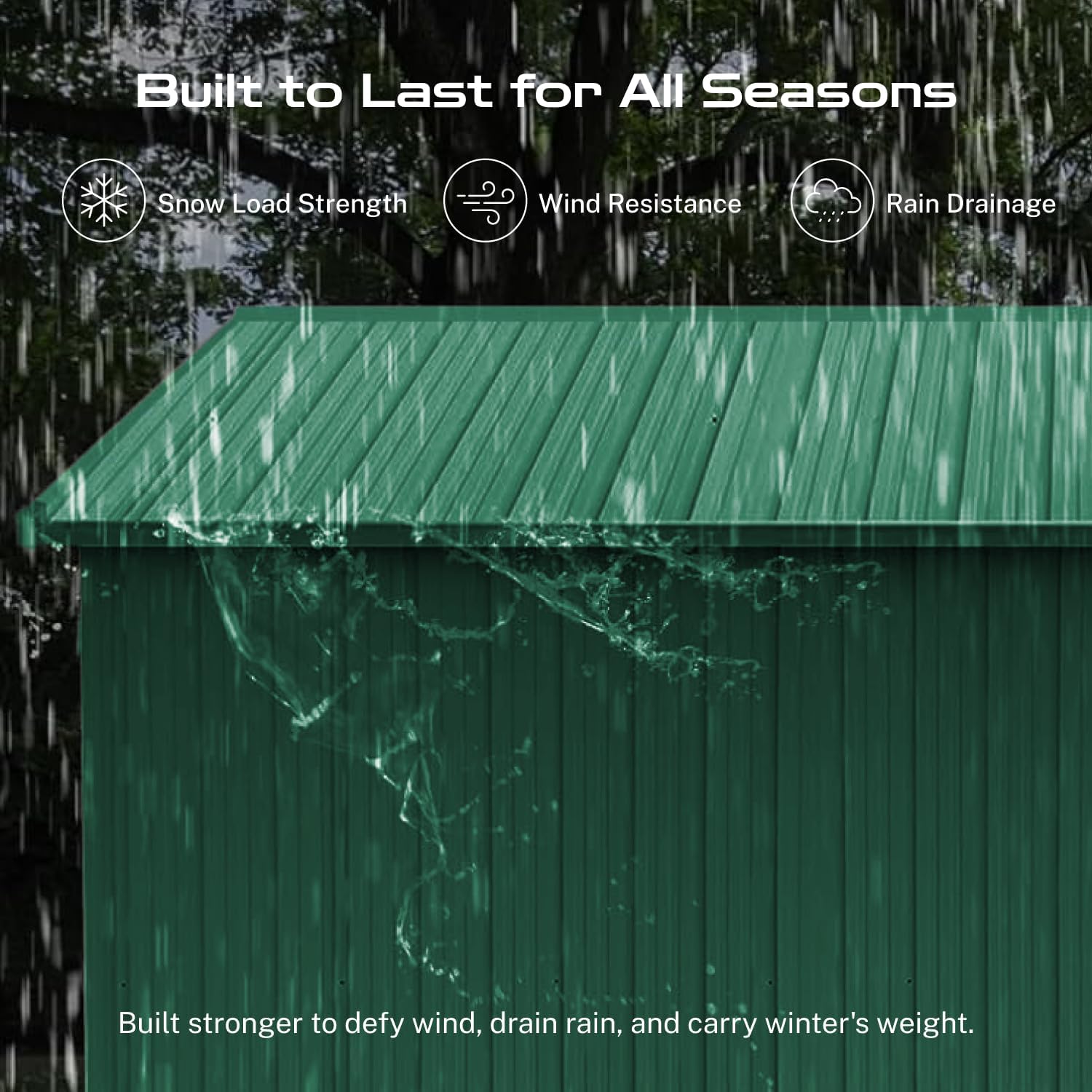 - ☔ [Sloped Roof for Superior Weather Protection] Designed for real-world conditions, the efficient sloped roof system guarantees optimal rainwater drainage, preventing damaging pooling and leaks. This key feature in our storage buildings and sheds clearance design minimizes maintenance and ensures your tools, equipment, and belongings stay consistently dry inside