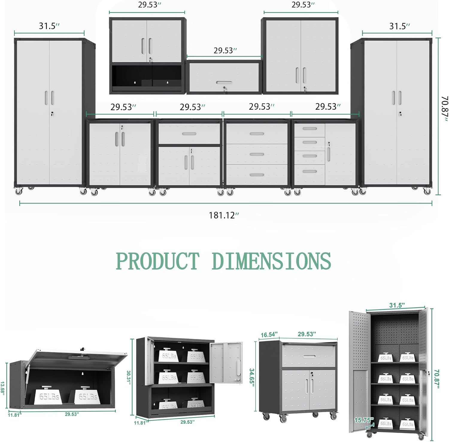 Metal Tool Cabinet,Garage Storage Cabinet System,Wall Cabinet & Locking Rolling Tool Cabinet with Doors and Adjustable Shelves,Steel Tool Cabinets for Home,Office (9 Pcs-StyleA, Black & Grey)