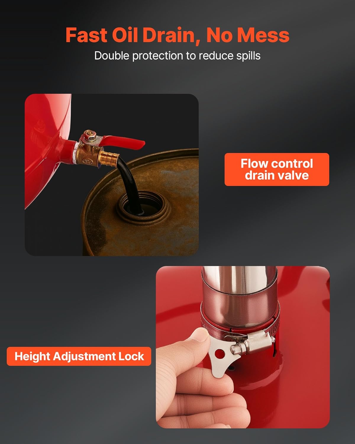 - Height Adjustable: With a range of 26-58 inches, this oil drain adjusts to fit various vehicles, ensuring a tight connection and avoiding leaks. Ideal for workshops, 4S stores, or DIY garages