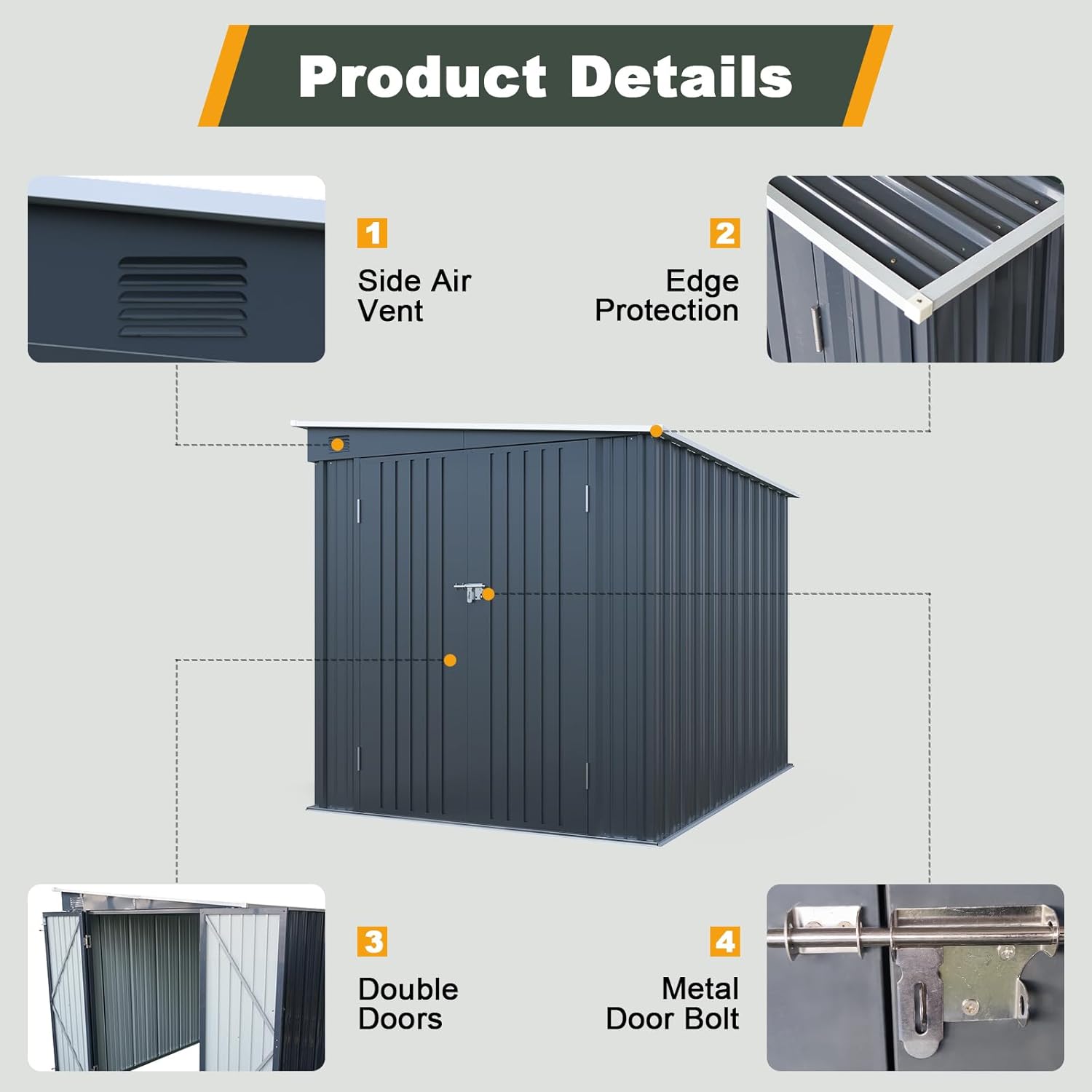 - Multipurpose Storage for Any Outdoor Setting: Whether you're storing gardening tools, pool supplies, or backyard essentials, this 6x8FT shed is a functional and stylish solution among storage houses for outside, blending seamlessly into patios, lawns, or garden spaces.