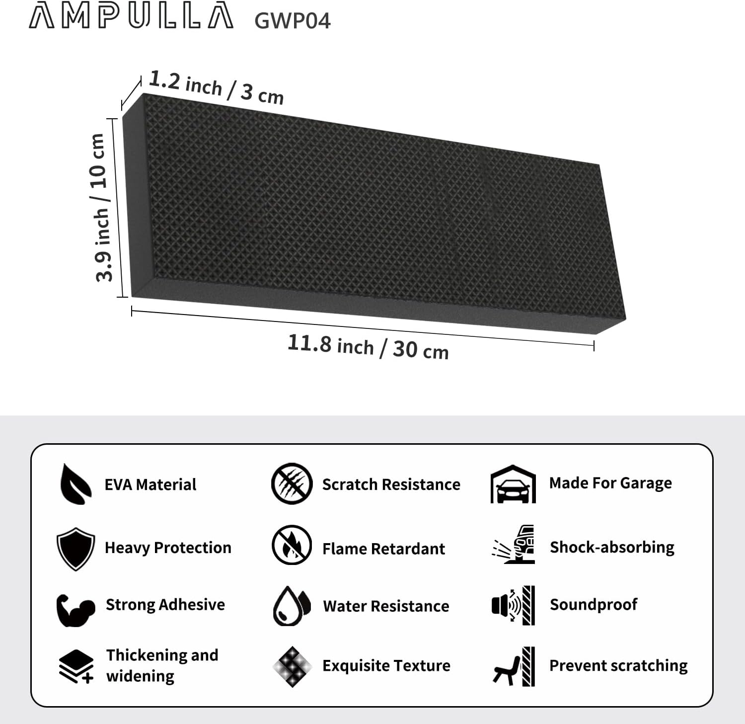 - Great Protection & Impact Absorption – Each strip size is 11.8" x 3.9" x 1.2". The 1.2" thick foam can perfectly absorb any impact up to 330lb or 150kg, preventing damage from any potential impacts when parking in the garage.