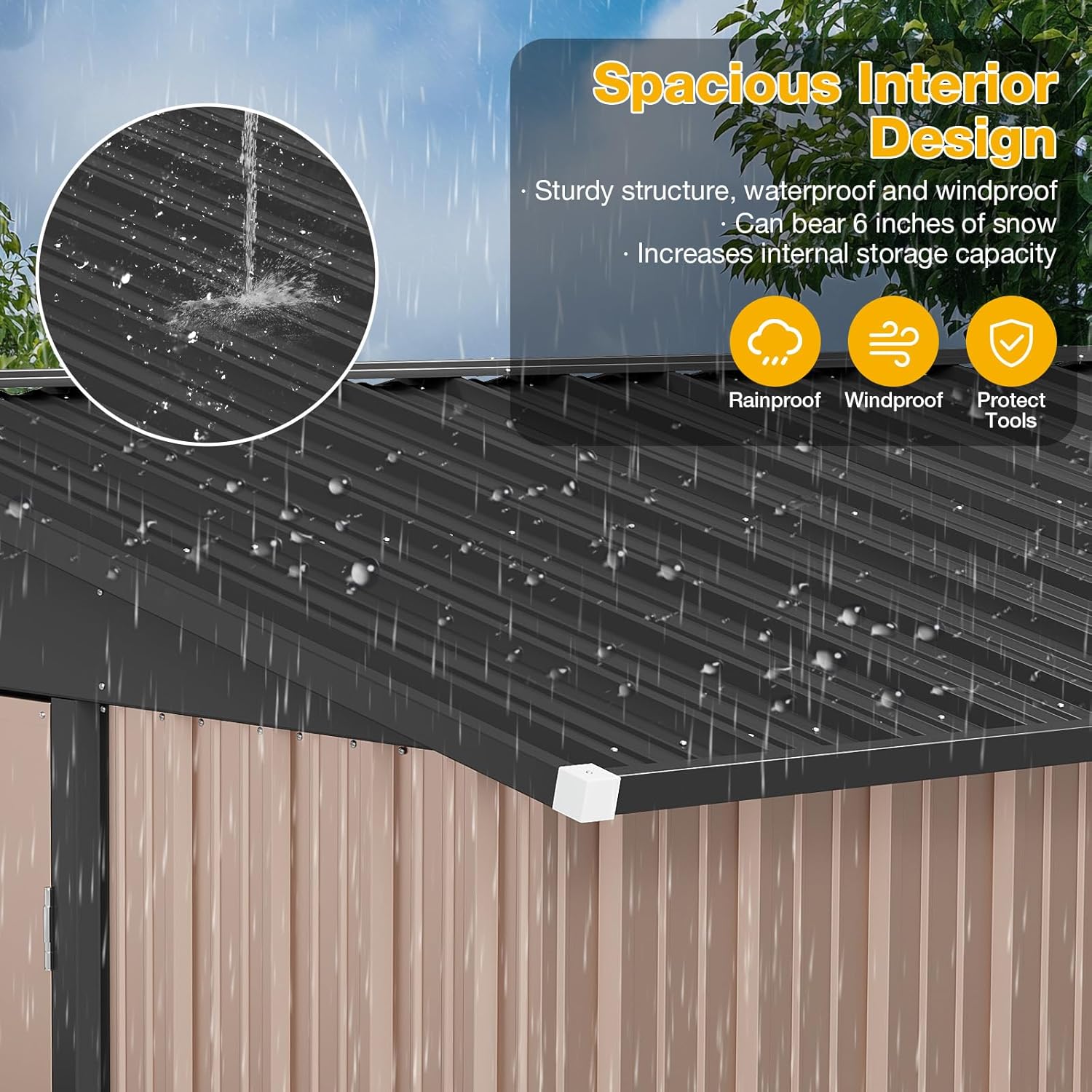 - Durable Galvanized Steel Construction: Expertly crafted with thick galvanized steel panels and reinforced structural engineering, this metal shed delivers exceptional longevity and rust resistance. The anti-rust powder-coated surface withstands harsh weather, ensuring years of reliable outdoor storage without corrosion, making it a premier storage shed for homeowners.