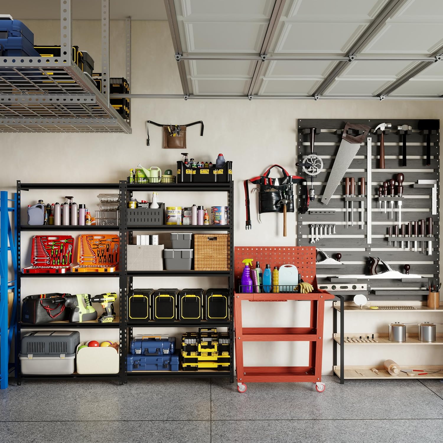 - 【Garage Shelving Heavy Duty Load 2000LBS 】LI JIU HOME storage shelves -Made of high-quality metal frame+wood boards,so each shelf can hold up to 400 lbs, with a total bearing capacity of 2000 lbs, which makes 5-tier closet shelves more stable, solid and more stuff can be stored