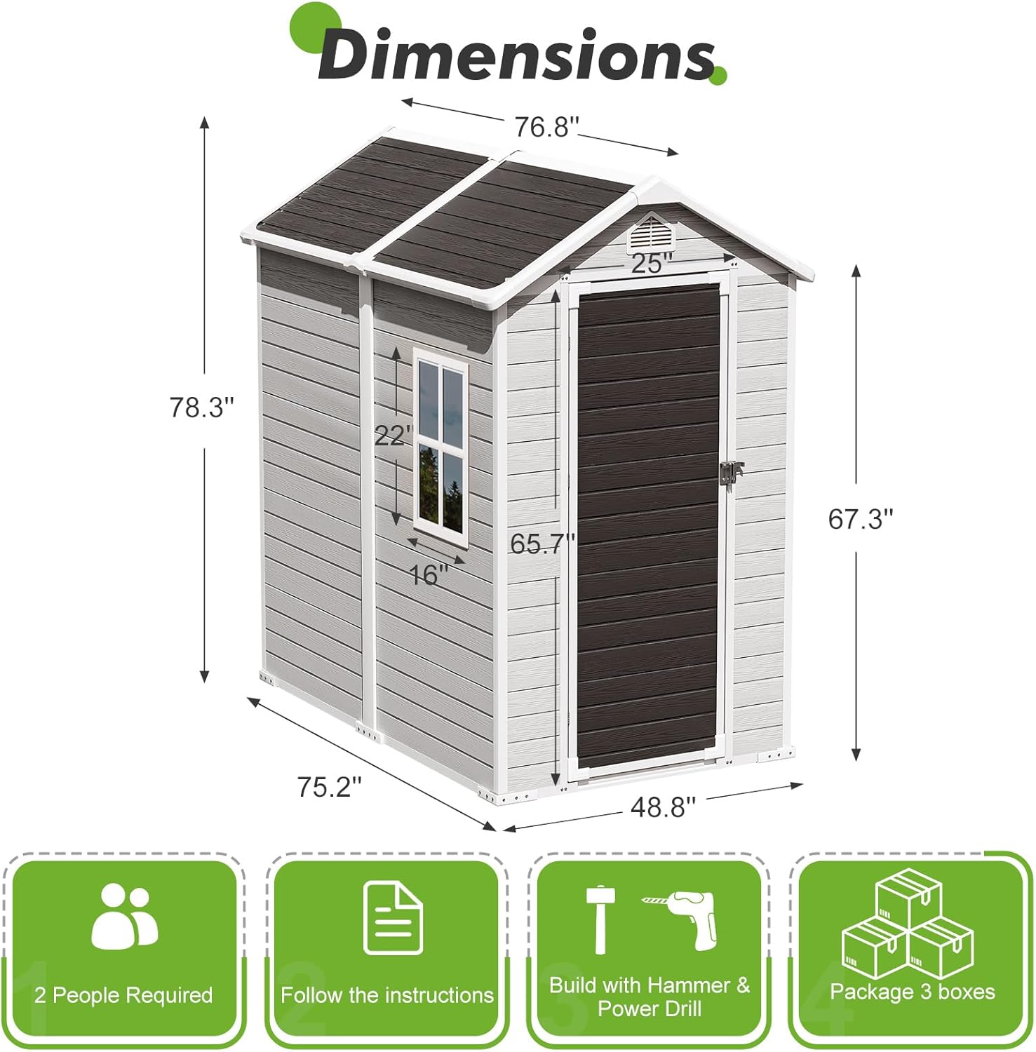 - 🏠PREMIUM RESIN MATERIALS: Our durable storage shed is crafted with 14MM premium polypropylene resin plastic, which is thicker than others in the market. Resin shed is waterproof, rustproof and UV-resistant, less bending and puncturing, worry-free for use in all weather conditions. It is a great shed house for your backyard, patio and garden.
