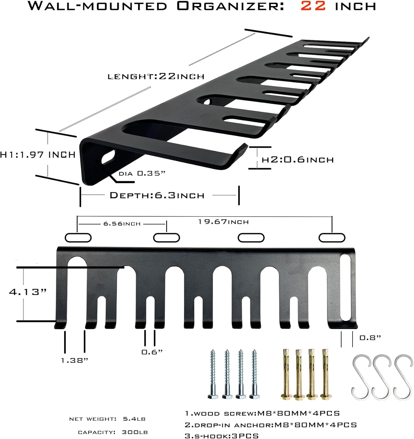 - 🎉Industrial-Grade Wall-Mounted Barbell Rack: 22-inch widened, 4mm thick high-strength steel, professional design, 300lb capacity. 100,000 fatigue tests, stably supports heavy gear like barbells.