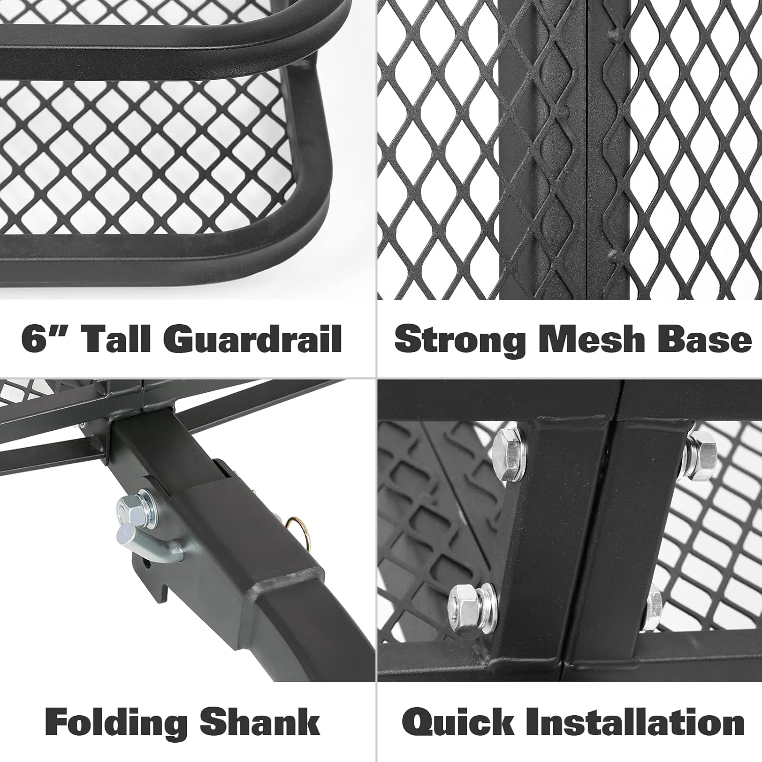 - Overall Dimensions: The hitch cargo carrier measures 60" (L) x 20" (W) x 6" (H), providing plenty of space for your gear. It’s perfect for camping, road trips, or moving, ensuring you won’t have to worry about running out of storage space.