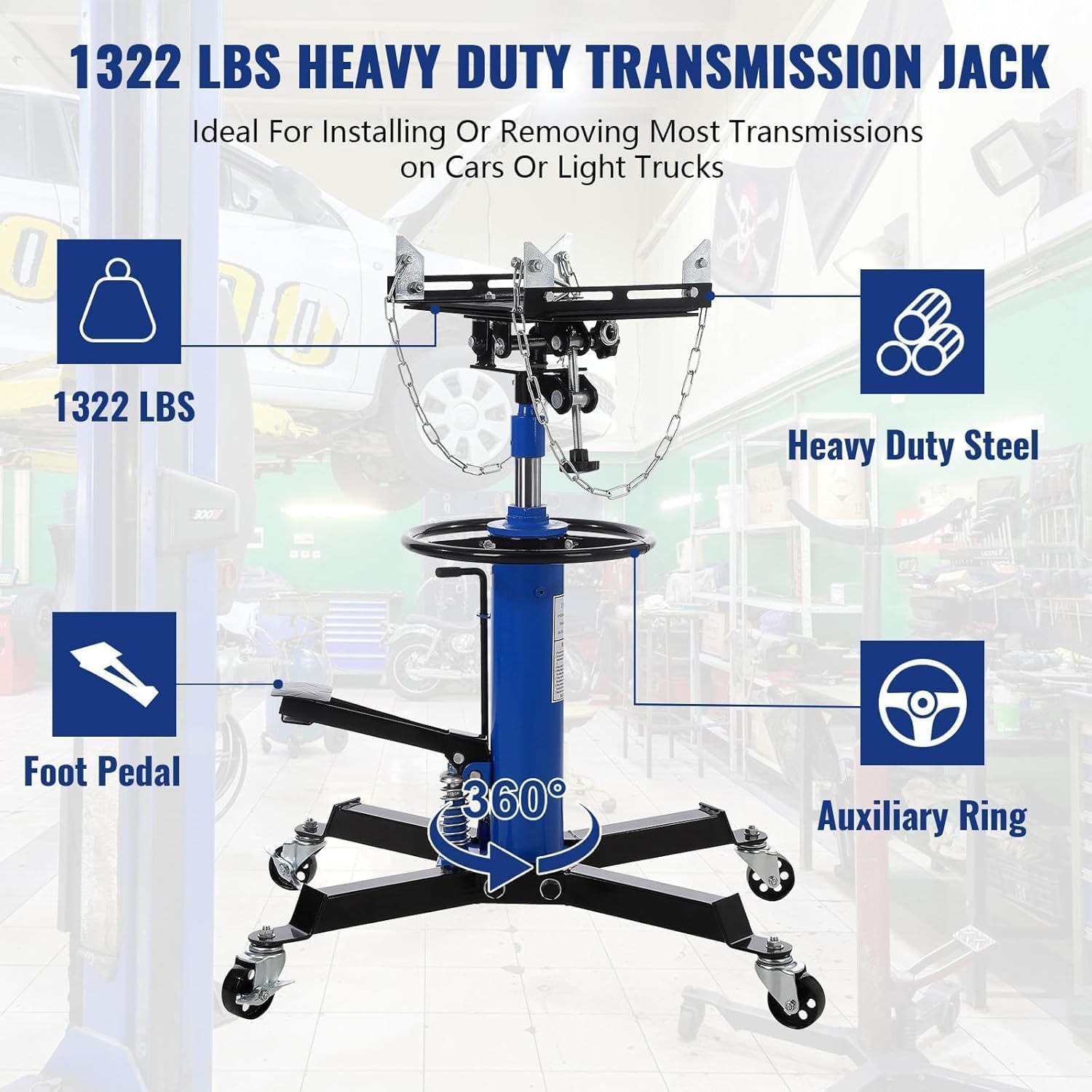 - Durable Steel Construction & Secure Packaging:Crafted from industrial-grade steel, this transmission jack is built for long-lasting durability and heavy use. It ships in reinforced packaging with all parts securely fastened to prevent damage during transit. Perfect for both professional workshops and DIY home garages, this tool combines toughness with reliable performance.