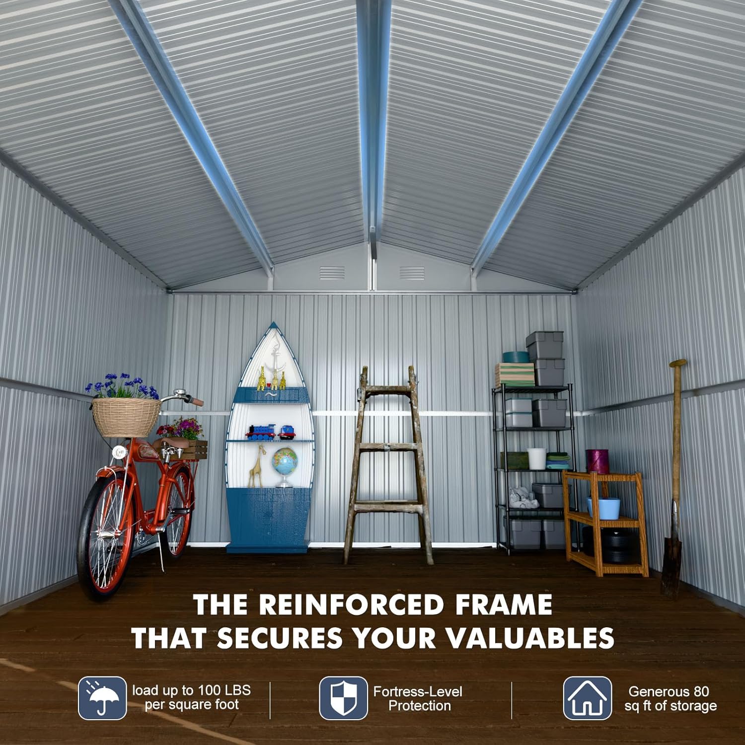 Metal Shed 8x10x6 FT - Steel Tool Storage with Sliding Door and Air Vents - Outdoor Bike Sheds for Garden, Backyard, Patio - Utility Storage Solution